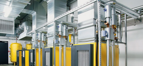 Compresores con unidades de recuperación de calor utilizados para calentar la planta y los equipos de proceso en invierno y extraer el exceso de calor en verano.